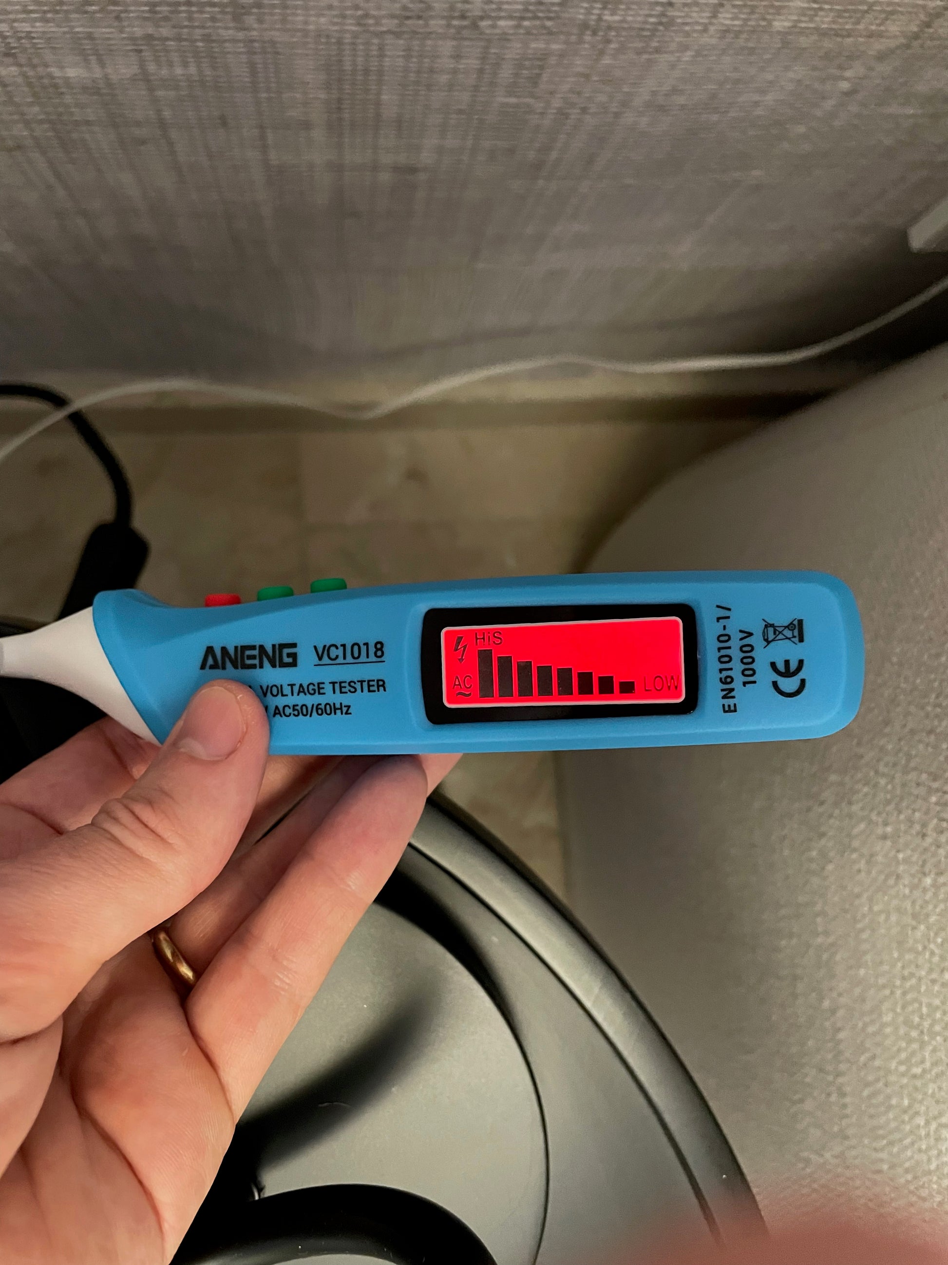 Exemple d’utilisation : Si vous avez une lampe de chevet, la fiche de type C à deux broches peut être branchée dans les deux sens. Cependant, l’un des deux sens est le mauvais sens, car, même éteinte, la lampe continuera d’être traversée par le courant jusqu’à l’ampoule. Ceci générera de la pollution électrique toute la nuit, à quelques centimètres de votre crâne. Comme nous sommes des êtres électriques, ce rayonnement électrique permanent élève notre niveau d’inflammation. Mais comment le savoir ? La solution c’est ce stylo détecteur de champs électriques. Vous le pointez vers l’ampoule (ou tout autre appareil électrique éteint) et s’il fait “bip bip”, c’est que votre branchement est inversé. Ce stylo testeur de champs électriques vous permettra en quelques secondes de déterminer si vos fiches sont branchées à l’envers et de corriger le problème. Vous pourrez rapidement assainir votre habitation, et réduire votre exposition à la pollution électromagnétique.