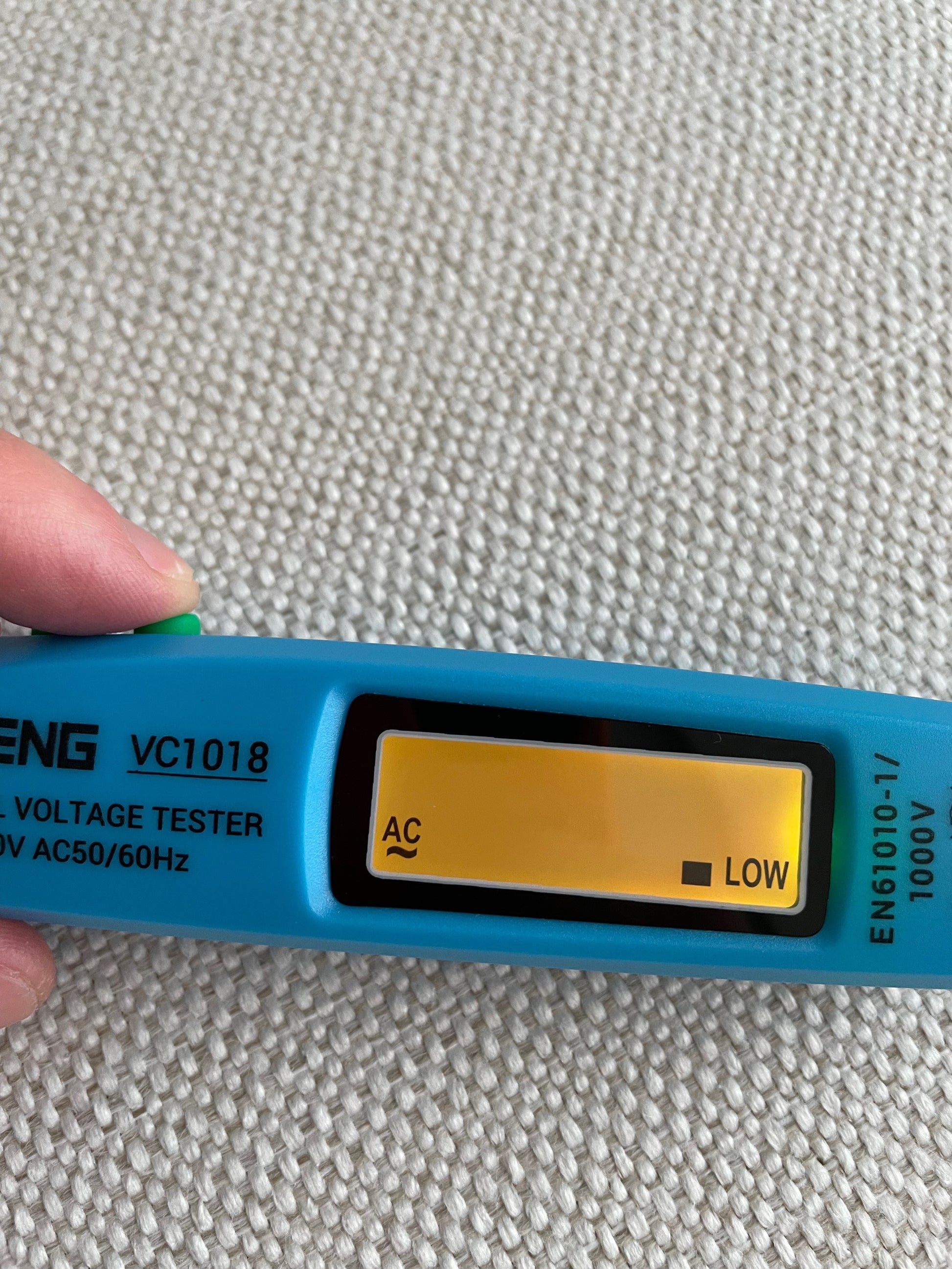 - Pour détecter les champs électriques sans contact (à distance), vous devez utiliser le mode “sensibilité élevée” en appuyant sur le bouton “S”. L'écran devient jaune. La sensibilité sera alors de 12V à 1000V.